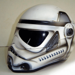 Below are 4 of the most popular helmets from the Star Wars movie series. Most of these replicated helmets have equivalent Motorcycle Helmet counterparts. They are typically only customized by airbrushing on the surface of a quality brand full face motorcycle helmet, while others have shown their true super-fan status by modifying a novelty helmet with a replica helmet from a star wars memorabilia store.